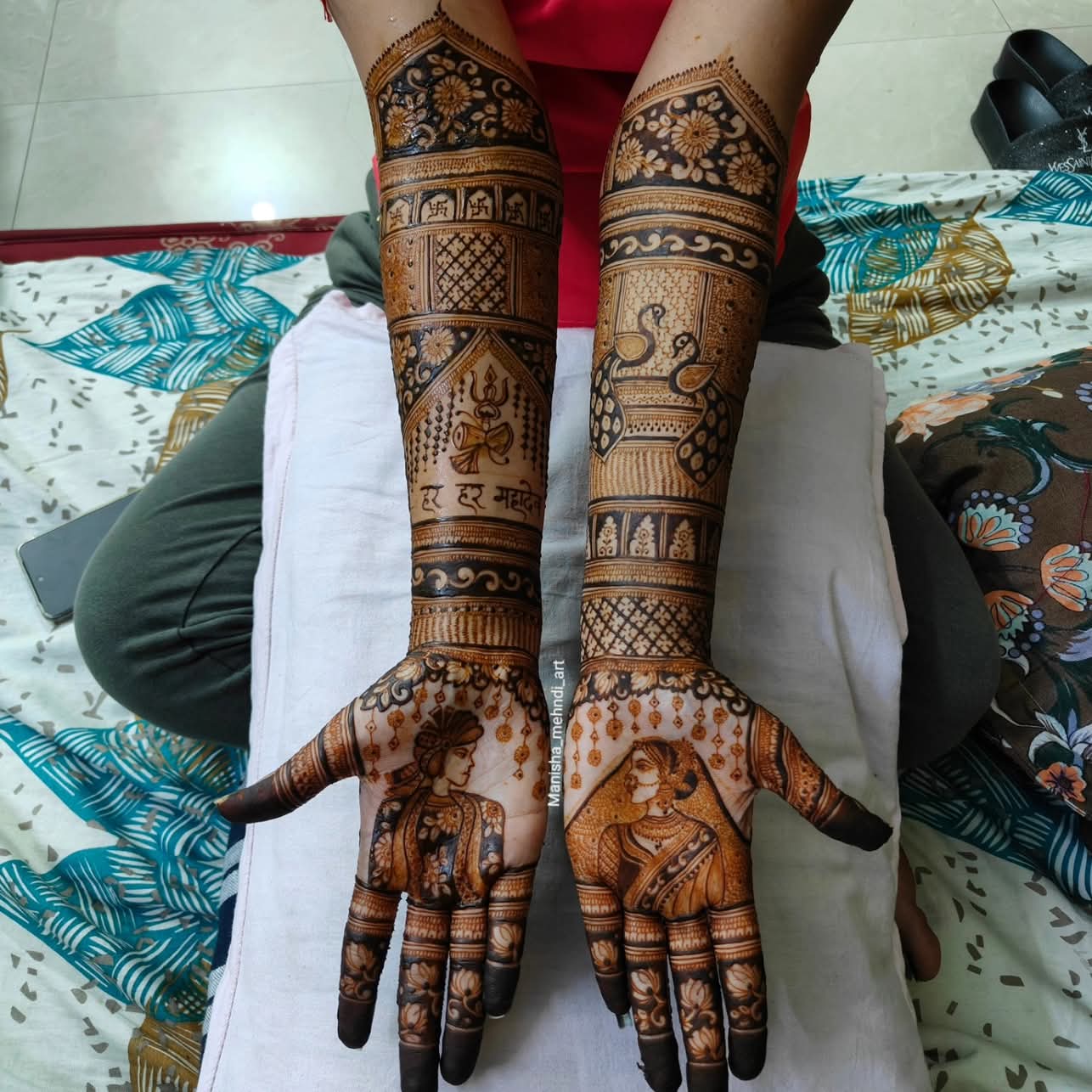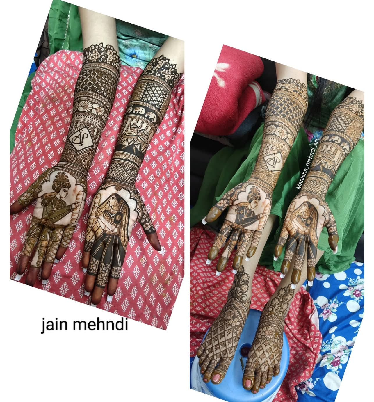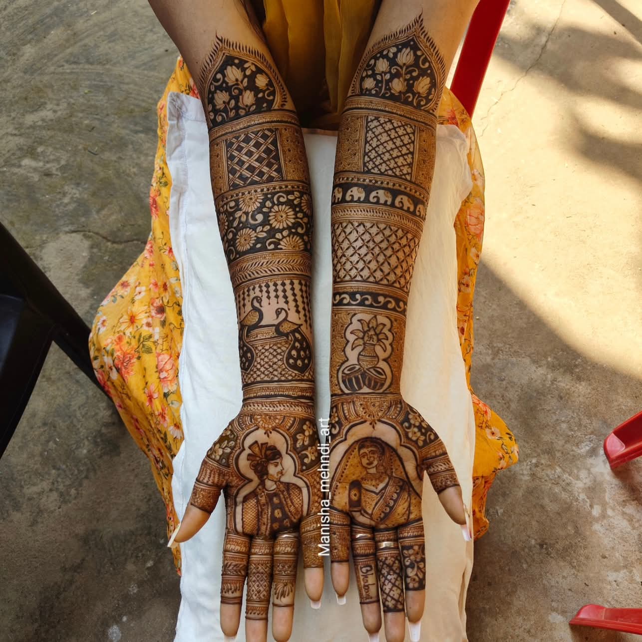 Portrait mehndi, a relatively new trend, involves creating detailed portraits of the bride (or other figures) on hands or arms, adding a personal and artistic touch to mehndi designs.
