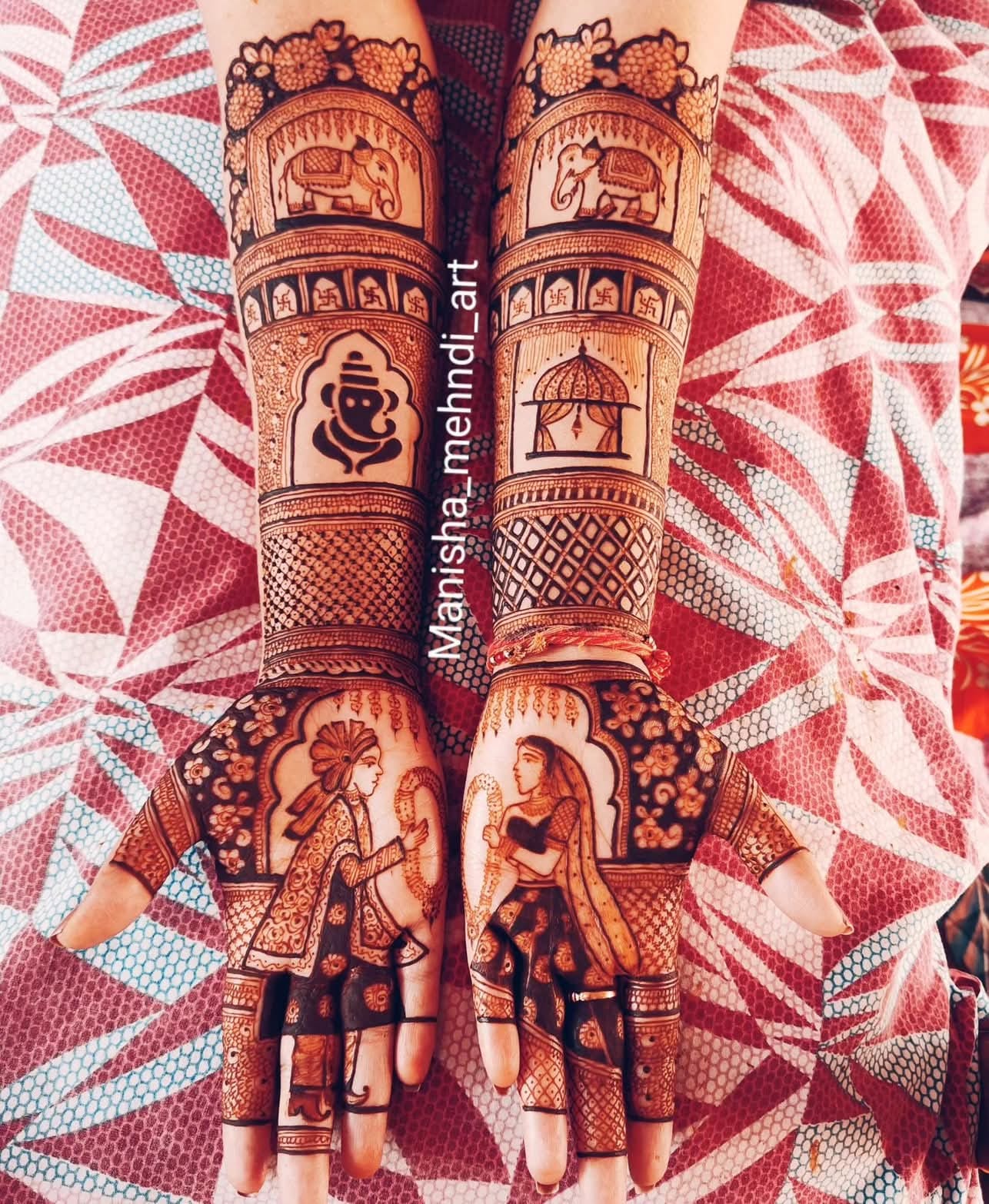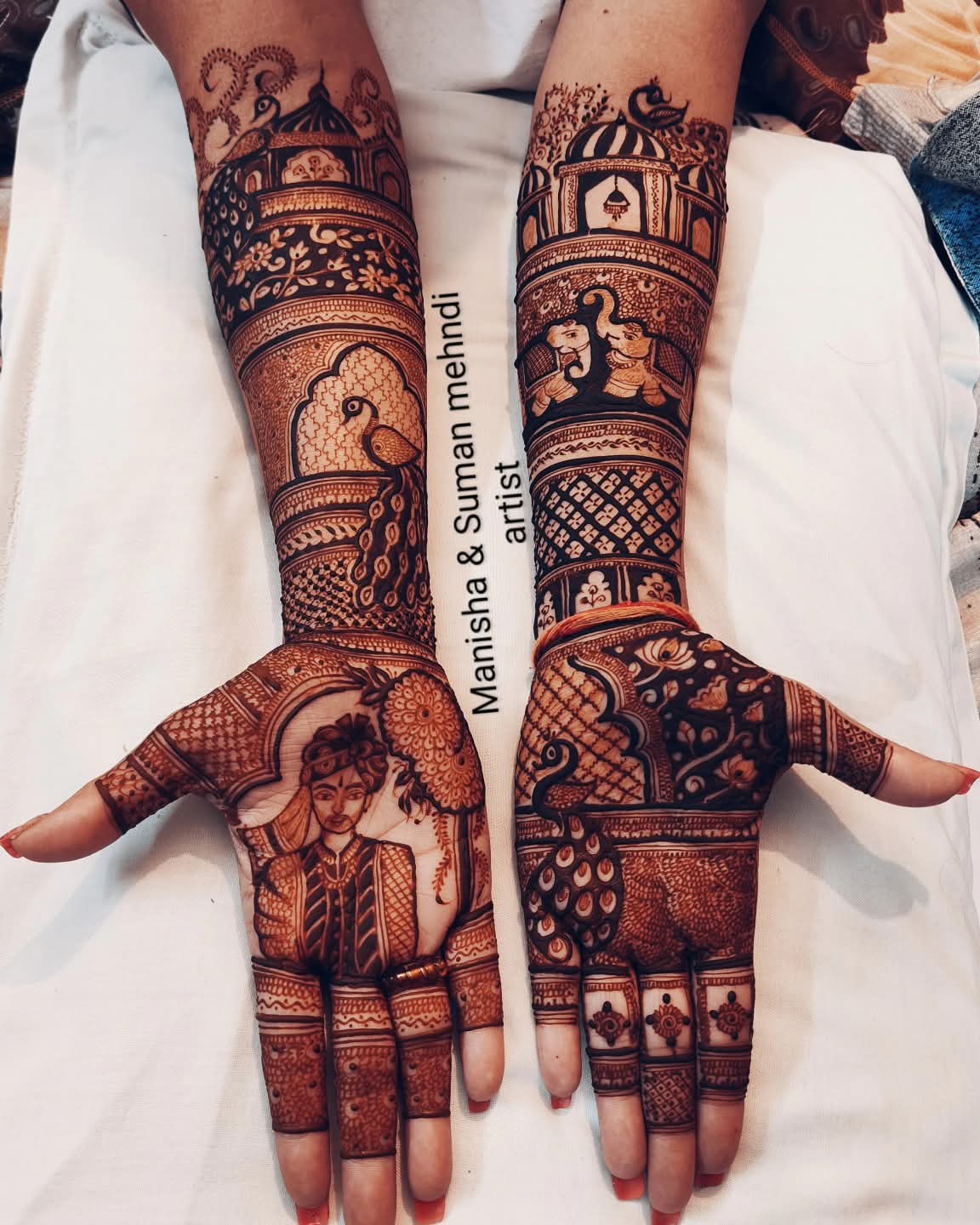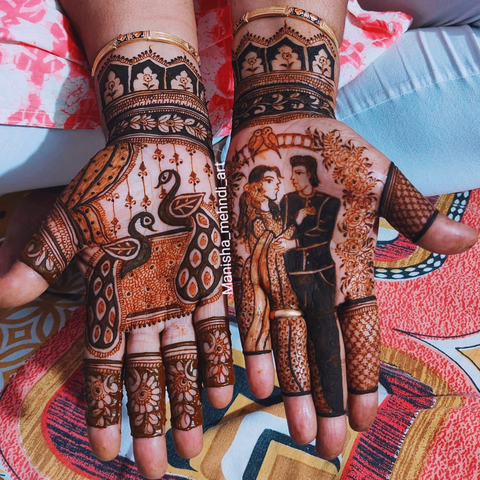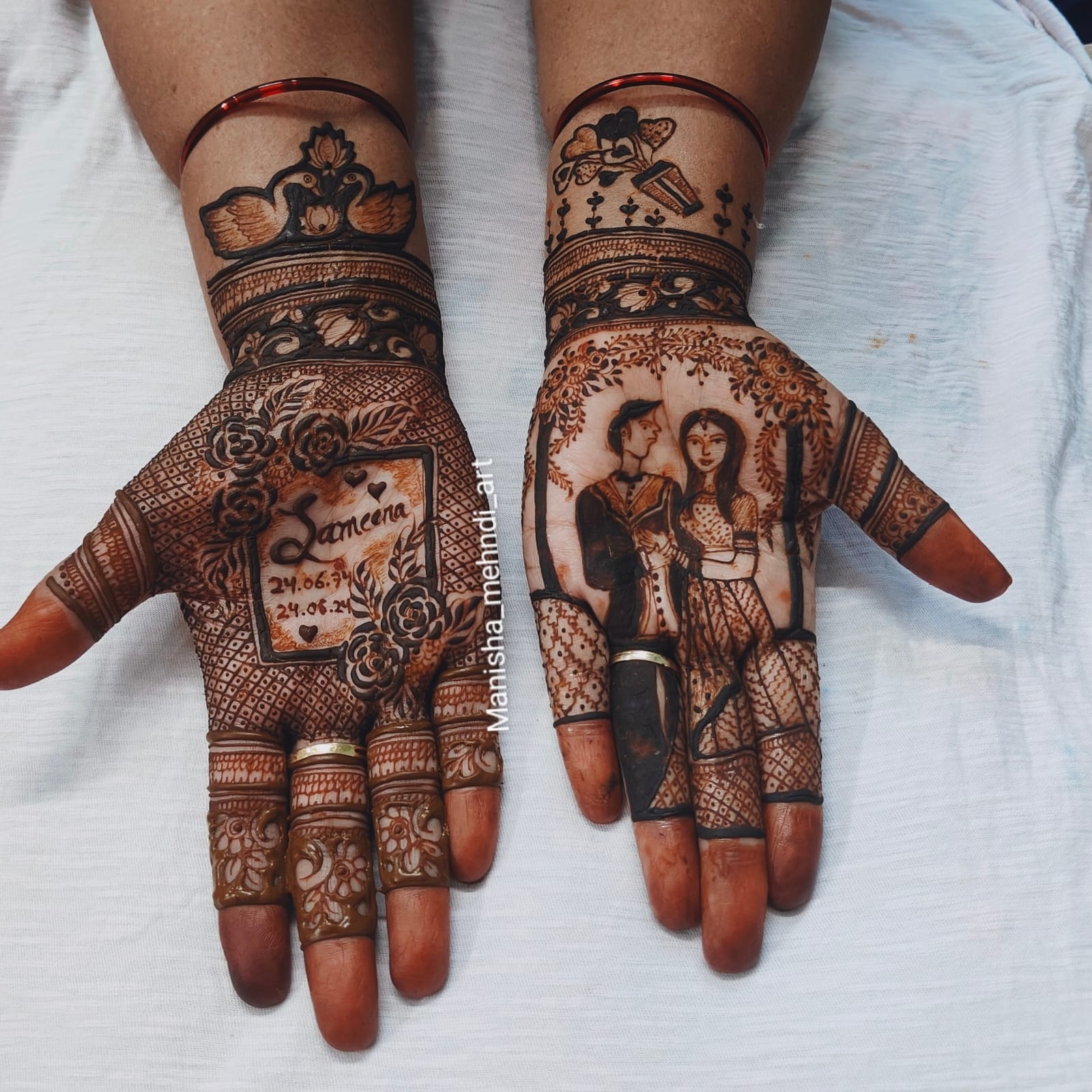 Portrait Mehendi is a creative and personalized service where we create a beautiful portrait or image of your choice using henna. This unique art form can be a striking addition to any celebration, perfect for commemorating a special moment, person, or event.