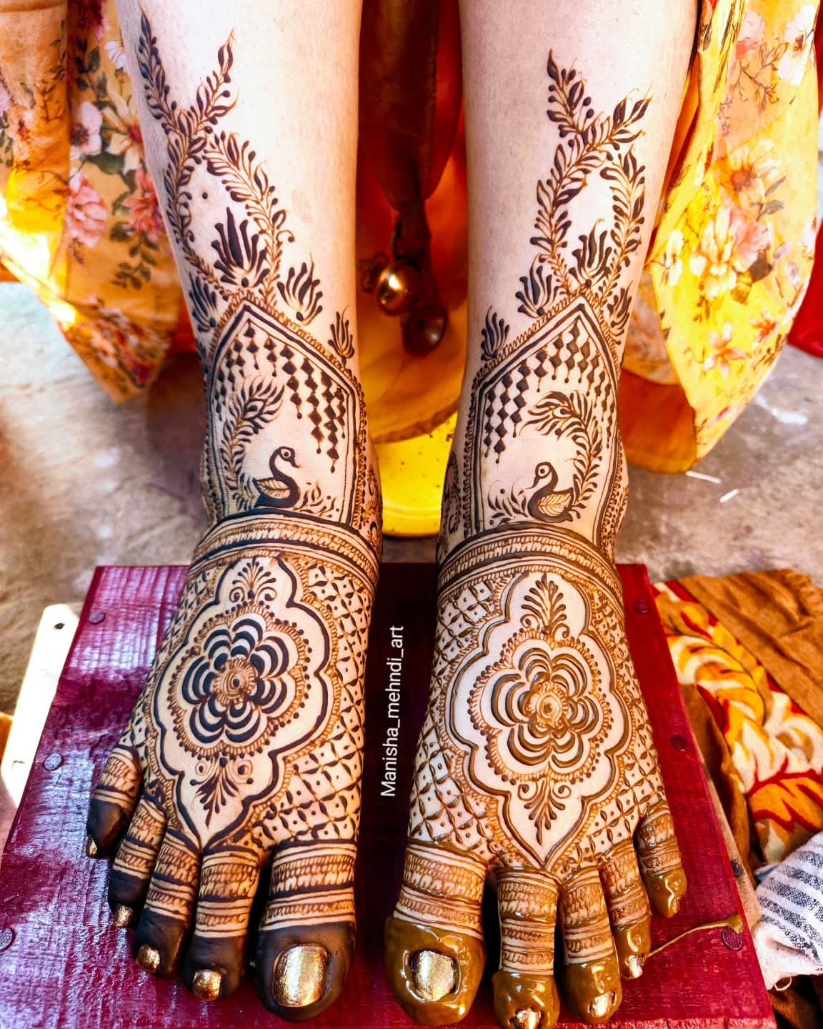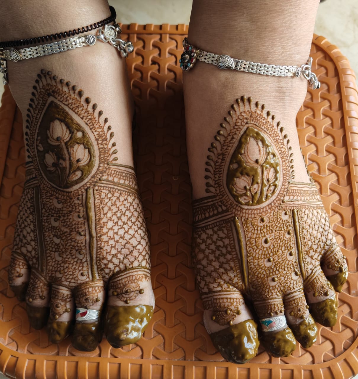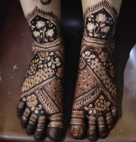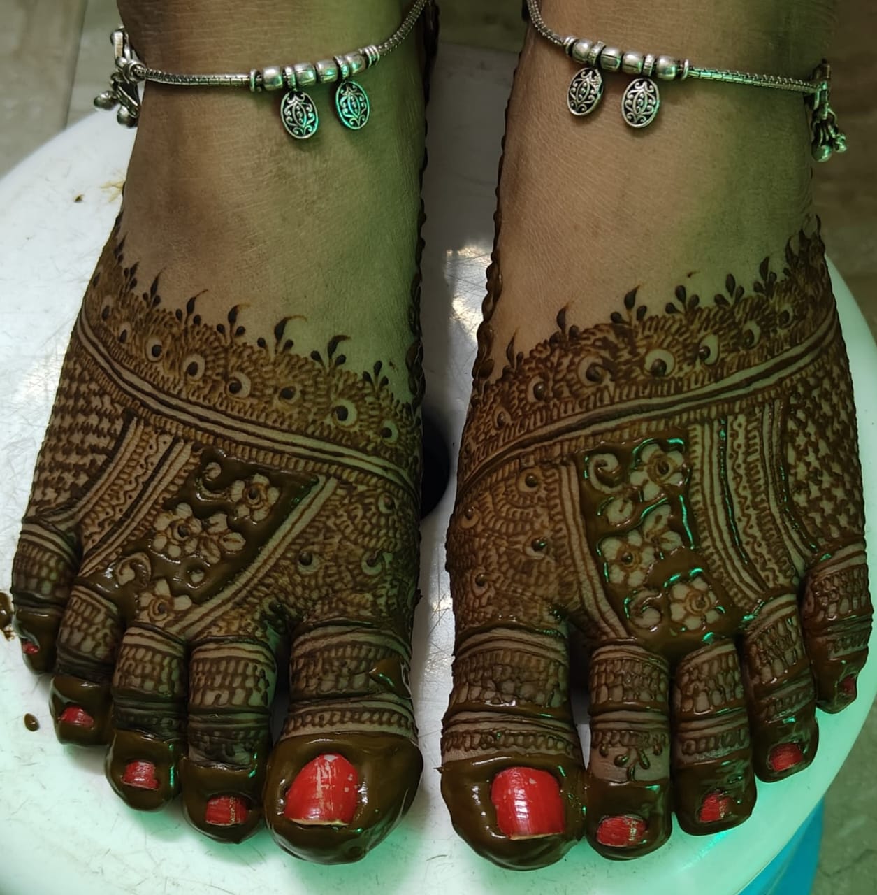 Foot Mehendi is perfect for brides, party-goers, or anyone who wants to showcase their feet with intricate and elegant henna designs. This service focuses on designing beautiful patterns that complement footwear and create a striking visual statement.